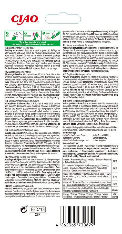 INABA Cat Churu Pops Tuna Chicken Tuńczyk Kurczak 4x15g