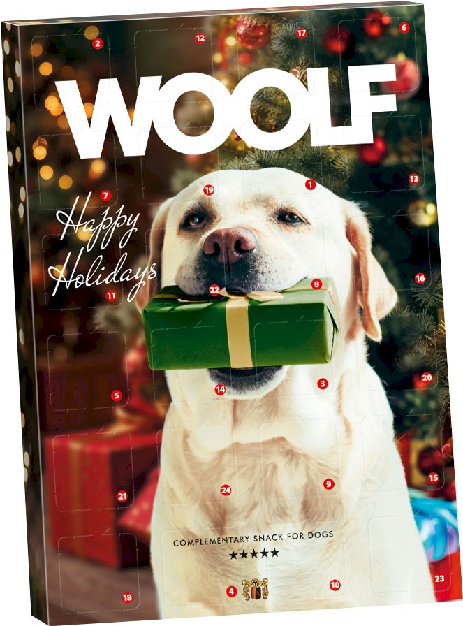 - Kalendarz adwentowy dla psów zawiera kilkarodzajów różnorodnych przysmaków Woolf.
