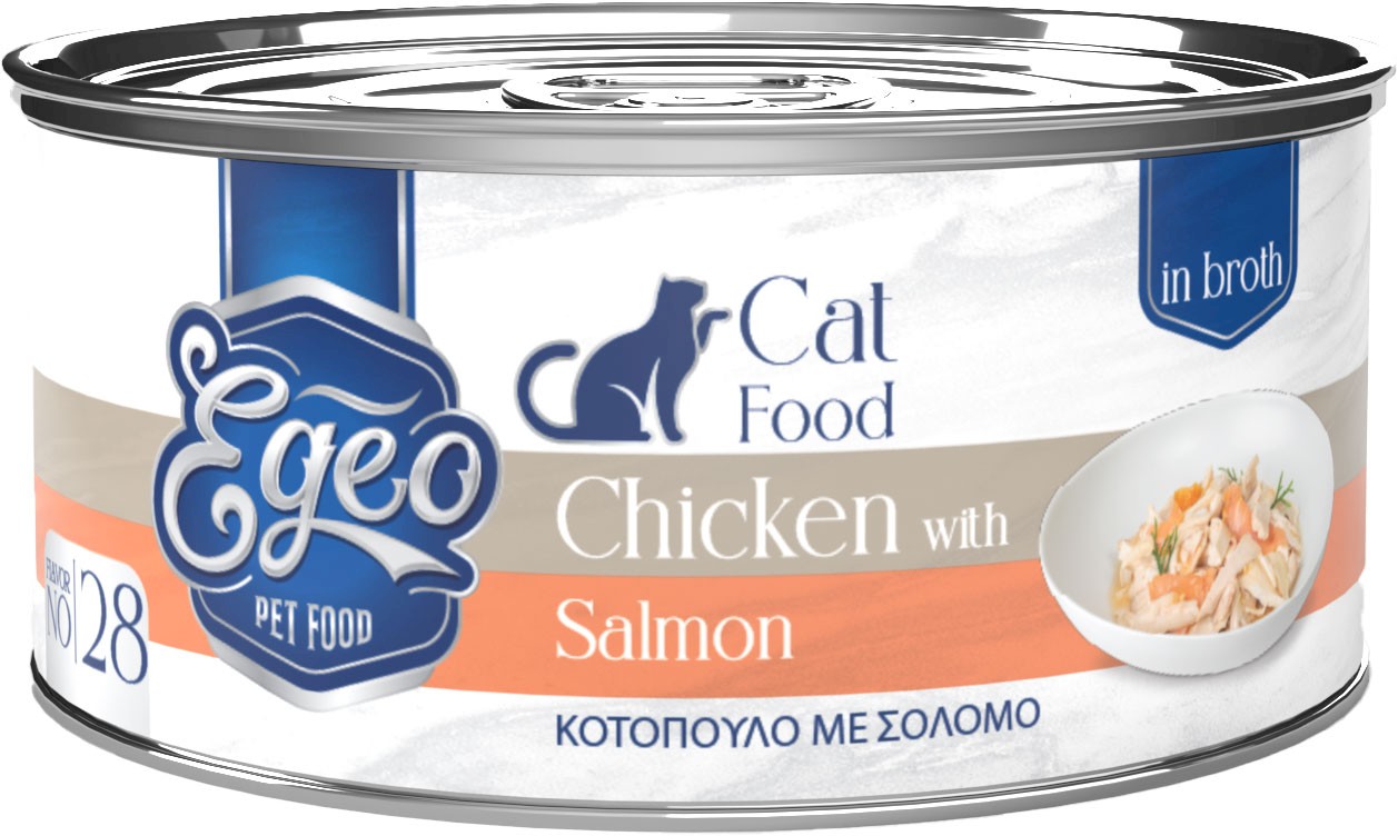 Cechy karmy dla kota EGEO Adult Chicken with Salmon in Broth: