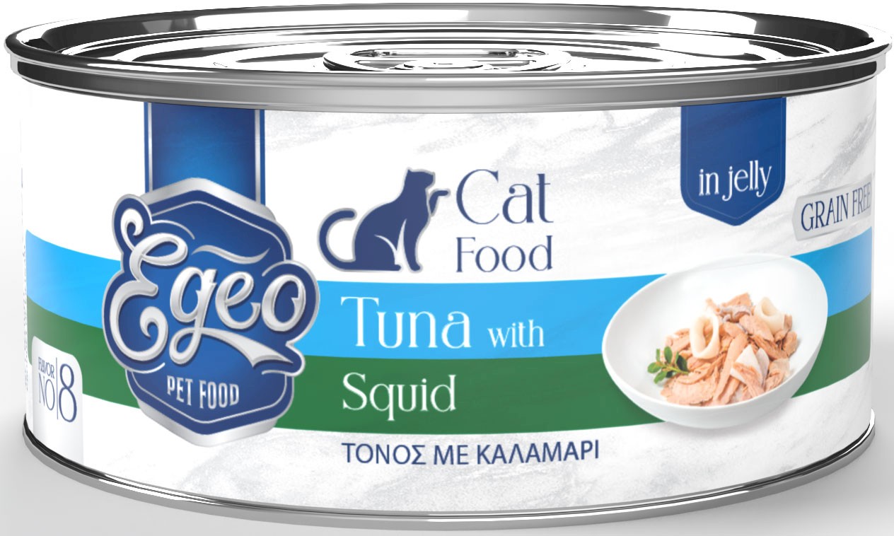 EGEO Cat Food Adult Tuńczyk z Kalmarami w Galaretce dla kota Puszka 85g
