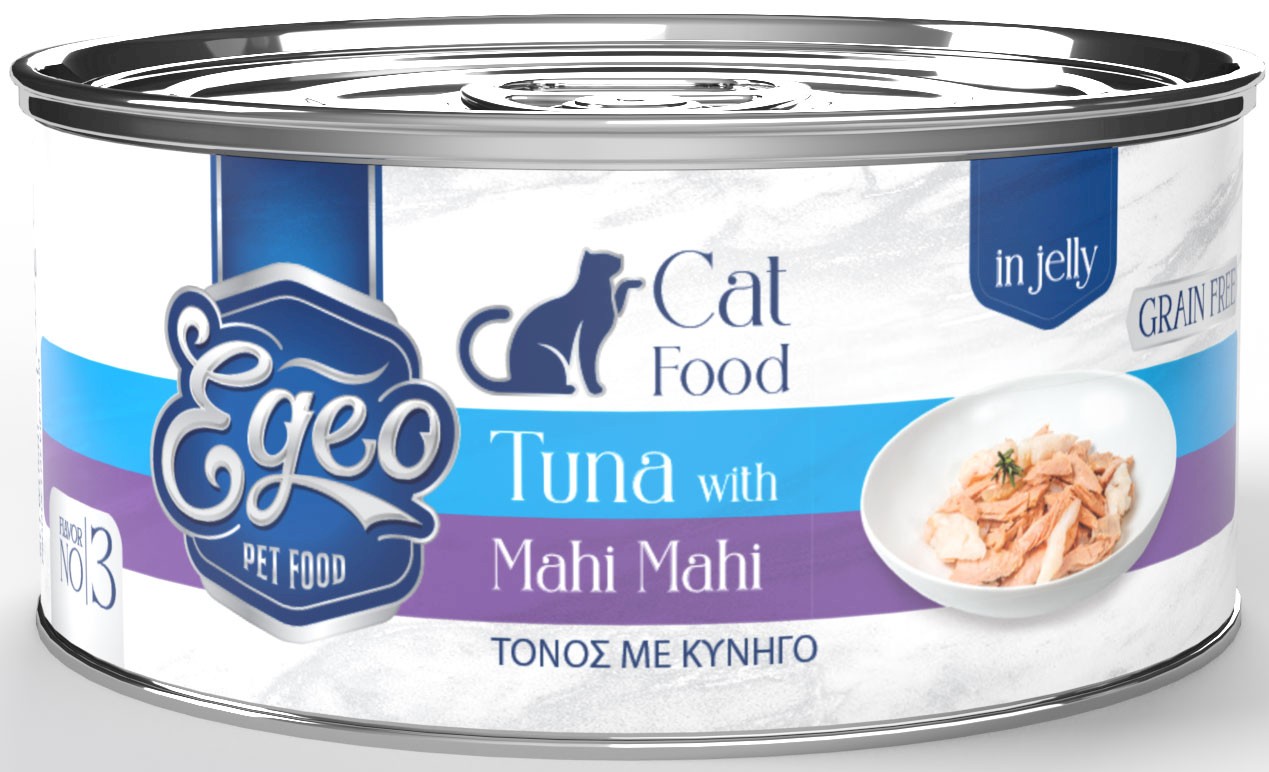 EGEO Cat Food Adult Tuńczyk z Mahi Mahi w Galaretce dla kota Puszka 85g