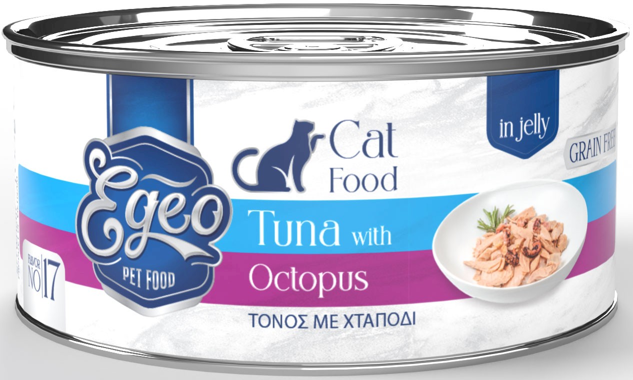 EGEO Cat Food Adult Tuńczyk z Ośmiornicą w Galaretce dla kota Puszka 85g