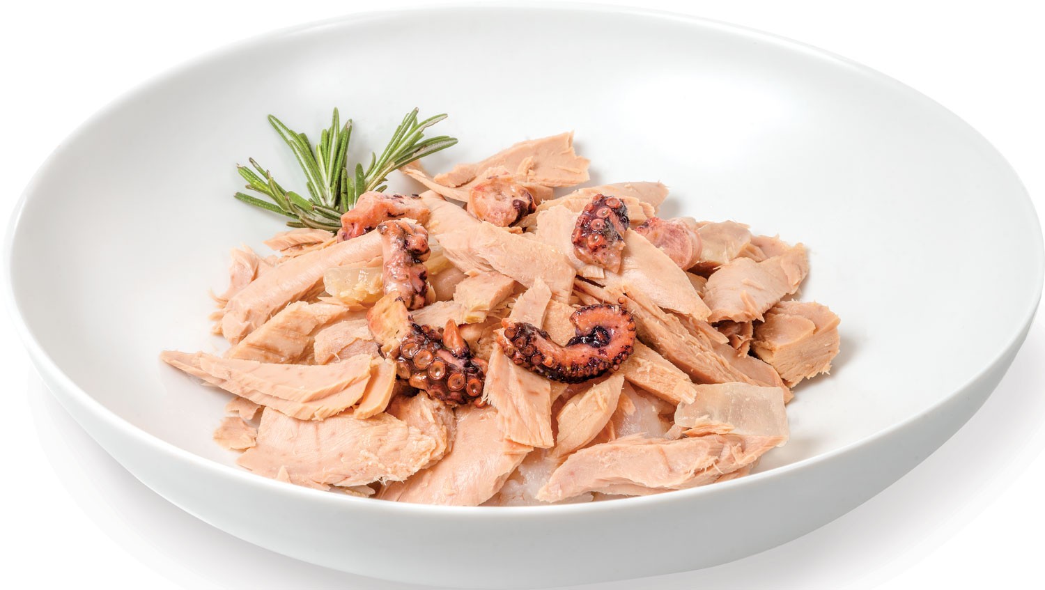 Tuńczyk: 51%, Osmiornica 6%, Wodorosty: 0,75%.
