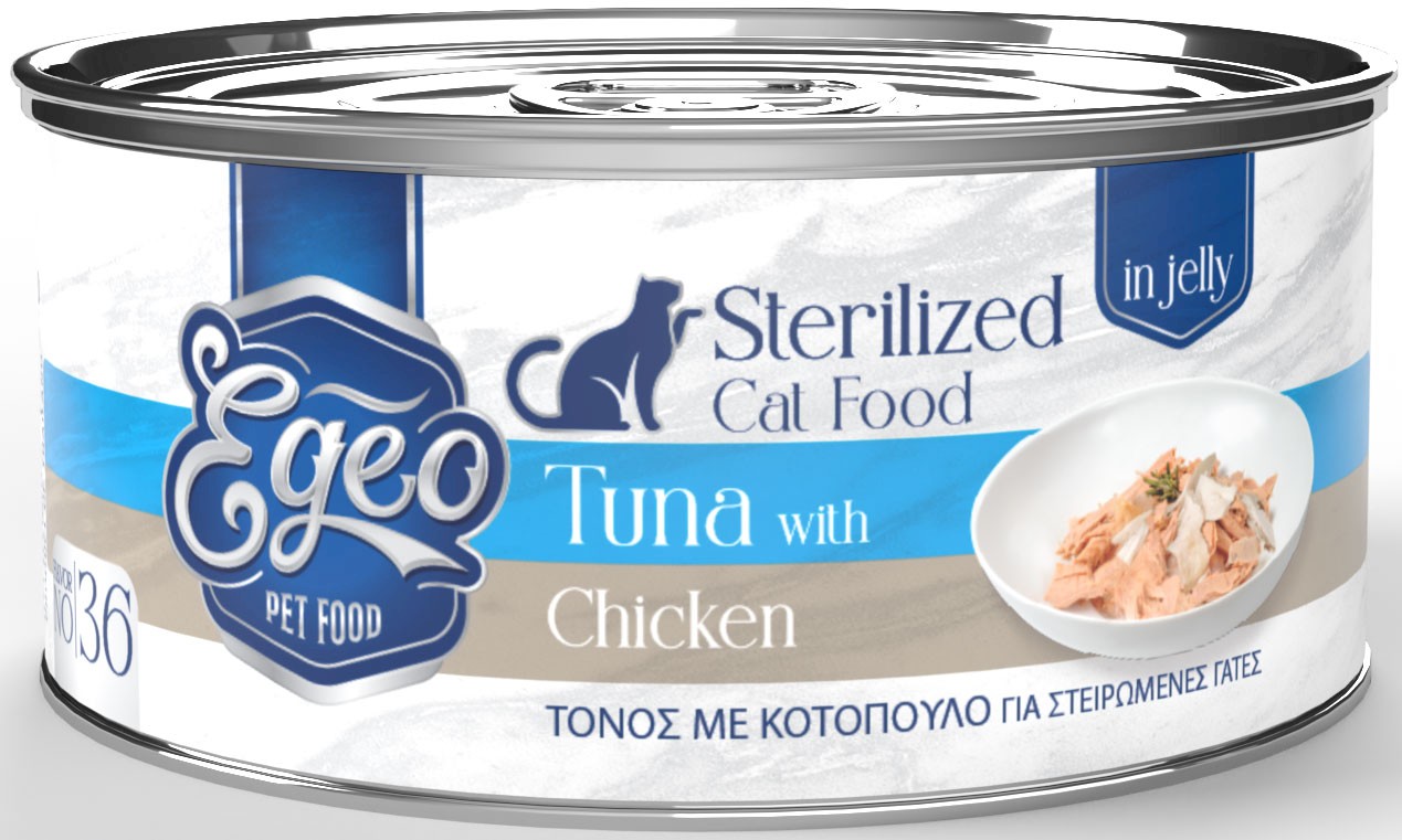 EGEO Cat Food Sterilized Tuńczyk z Kurczakiem w Galaretce dla kota Puszka 80g