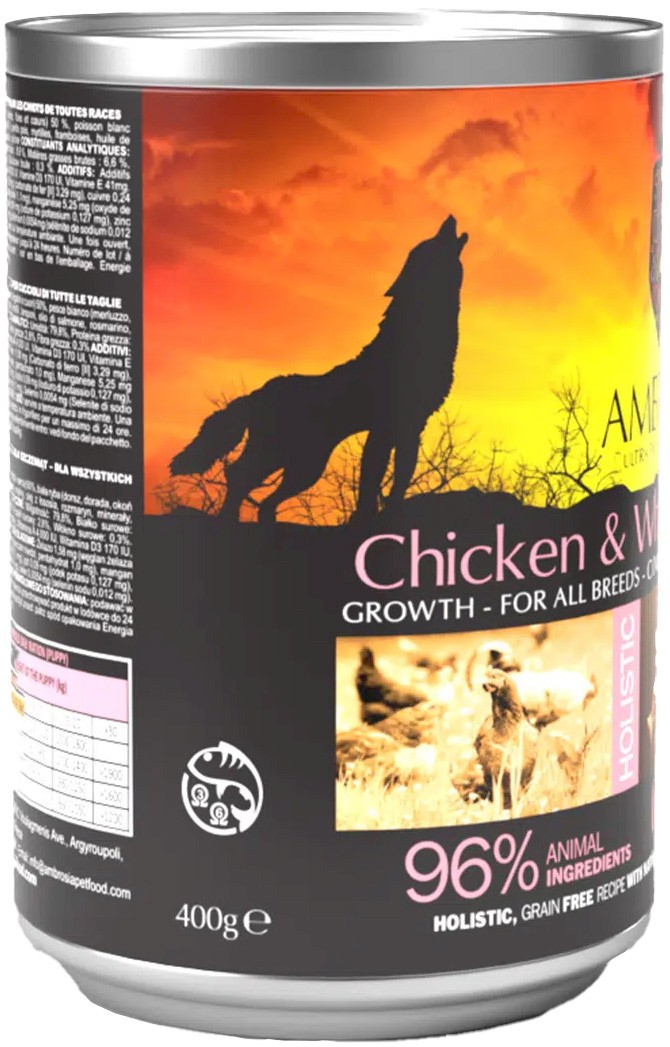 AMBROSIA Dog Puppy Growth Chicken / White Fish Kurczak i Białoryby bez zbóż 400g