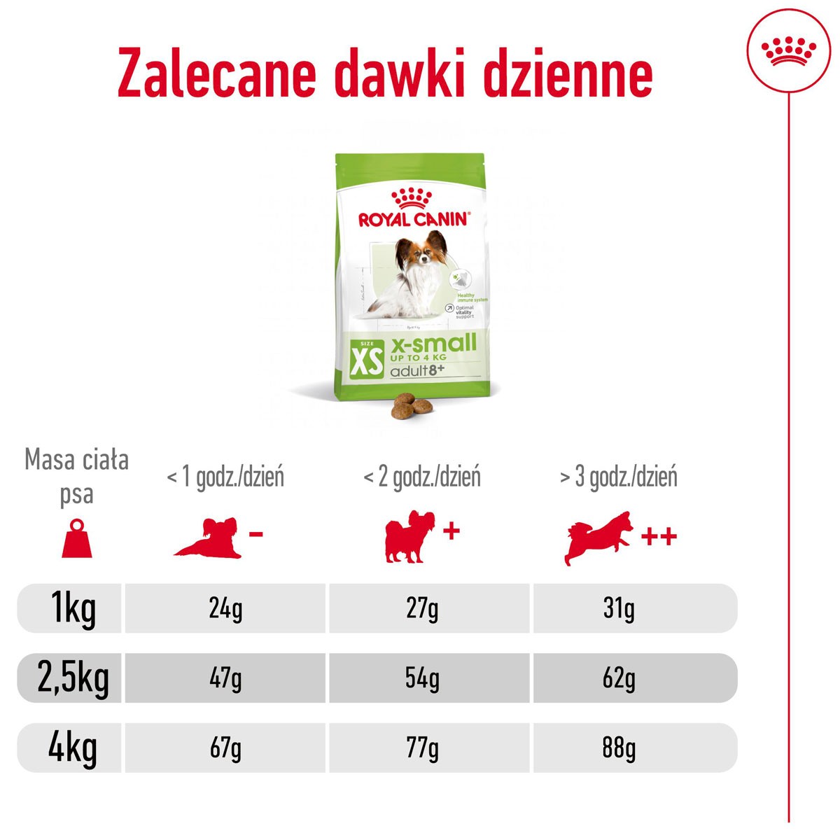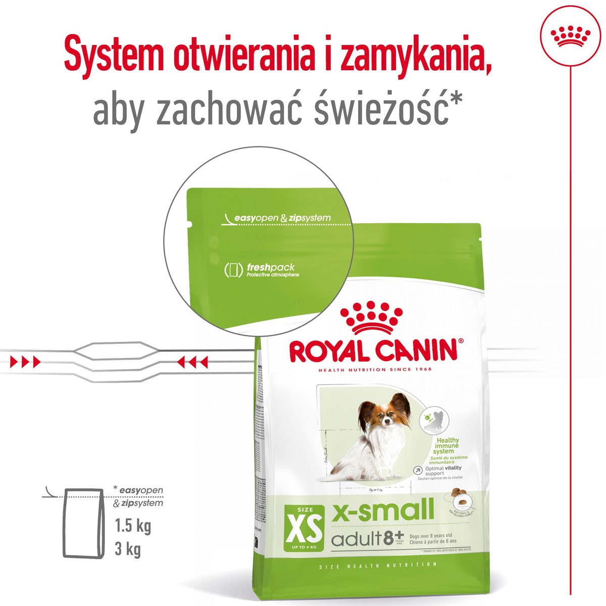 Cechy ROYAL CANIN X-Small Adult 8+: |