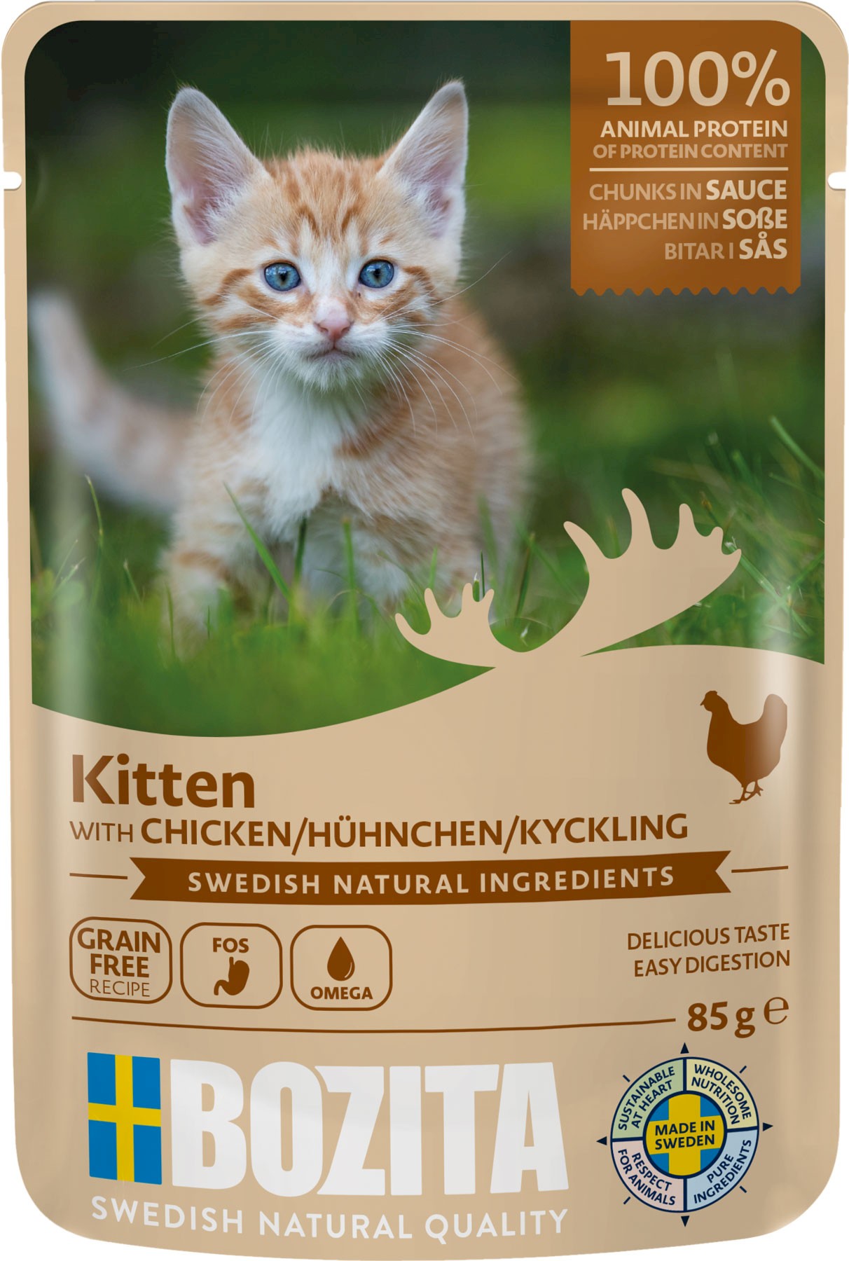Cechy karmy dla kota BOZITA Kitten Chunks in Sauce with Chicken Grain Free Recipe :