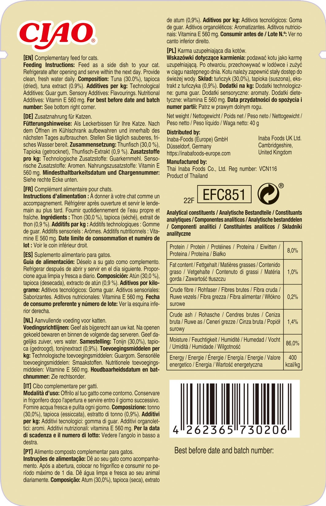 Pytanie o produkt INABA Cat Ciao Bisque Tuńczyk Zupa kremowa 40g: