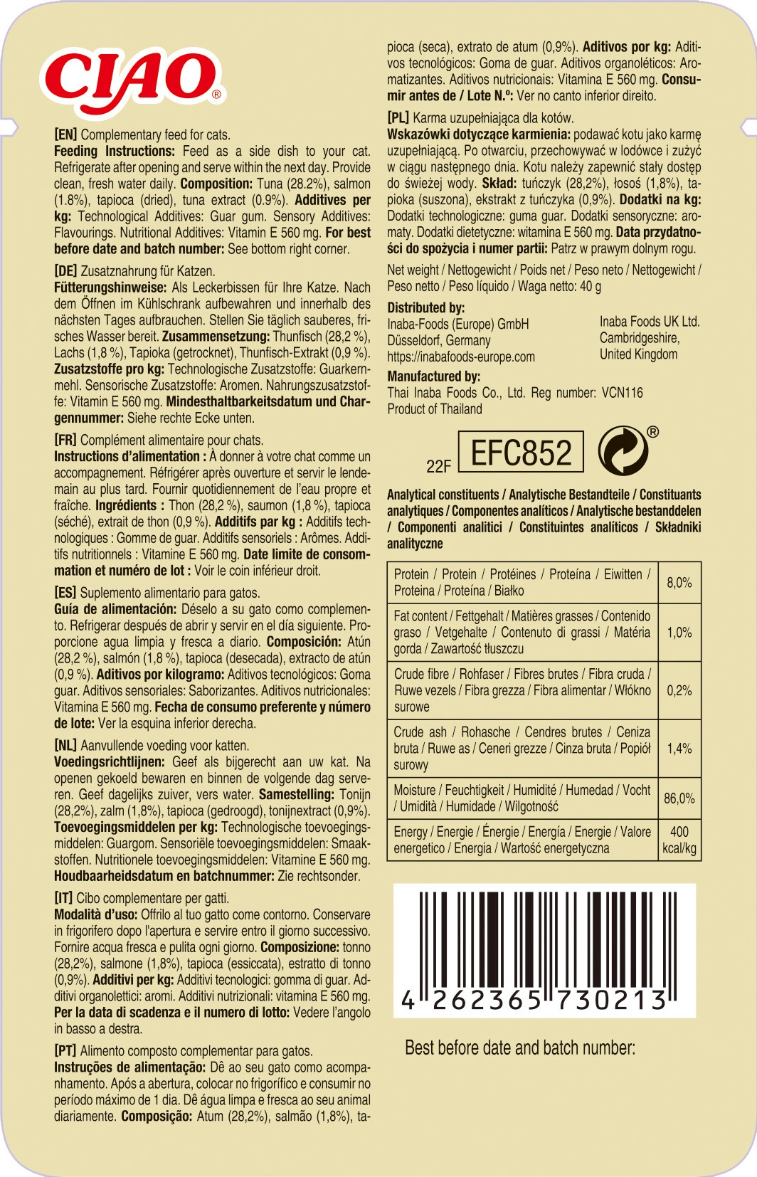 Pytanie o produkt INABA Cat Ciao Bisque Tuńczyk i Łosoś Zupa kremowa 40g: