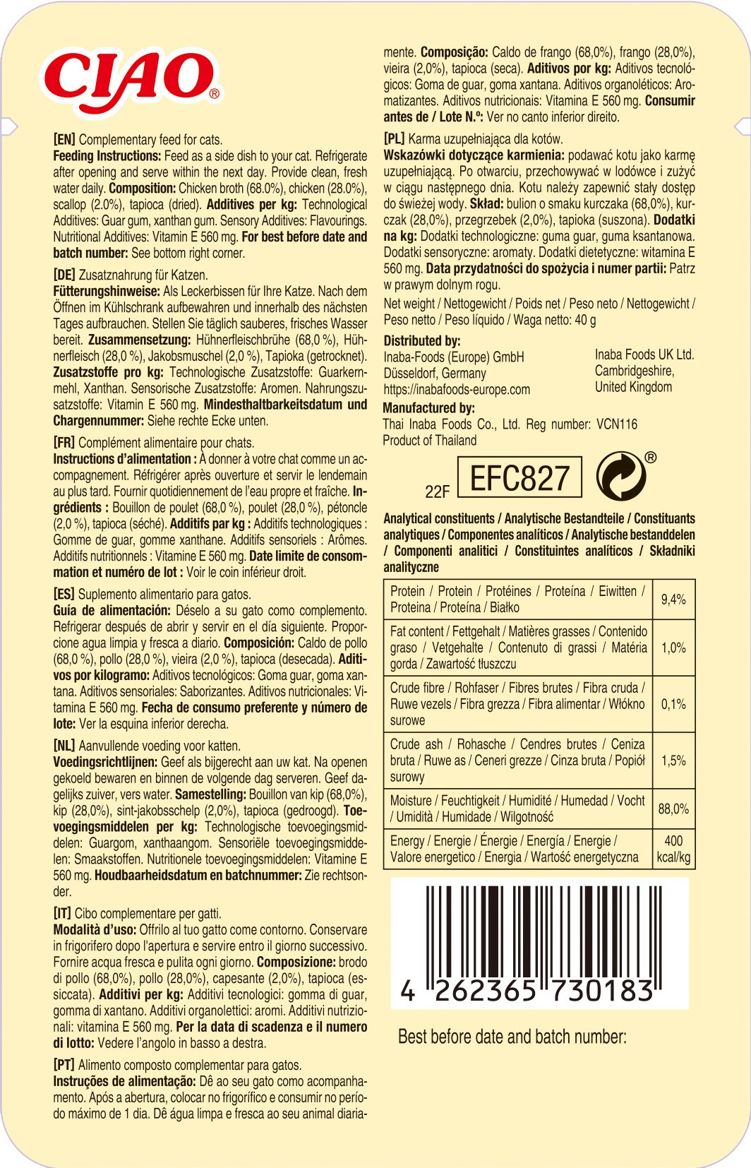 Saszetka dla kota Inaba Cat Ciao Broth Chicken with Scallop Recipe to: