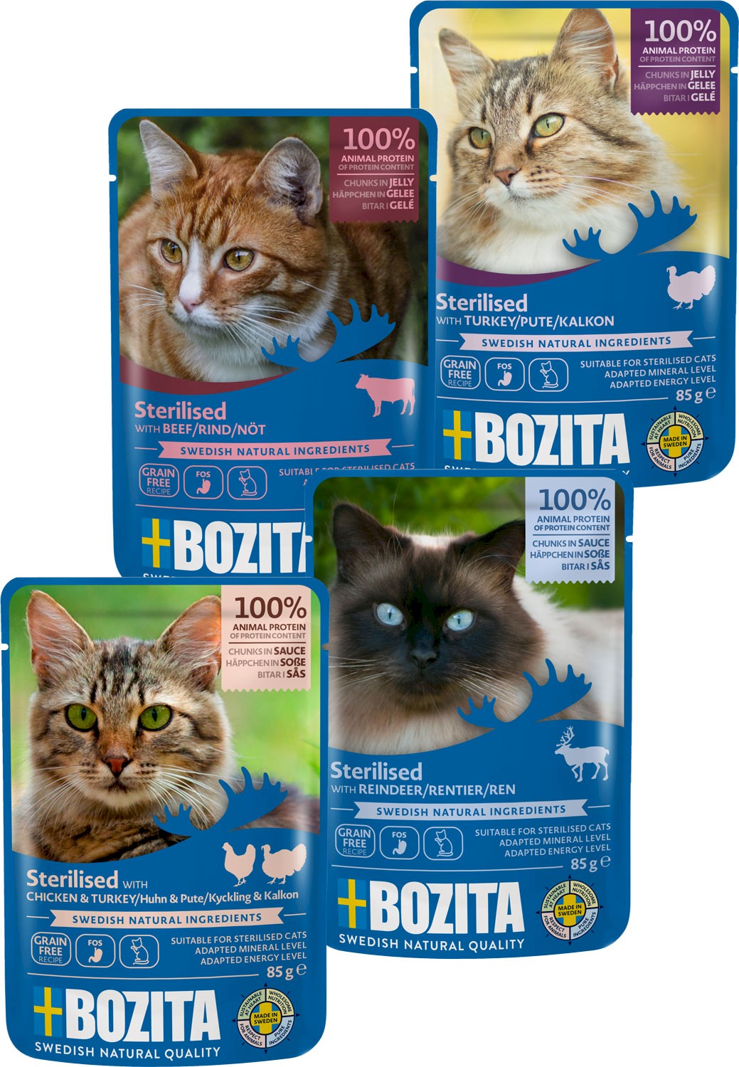 Cechy karmy dla kota BOZITA Sterilised Chunks in Sauce with Reindeer Grain Free Recipe :