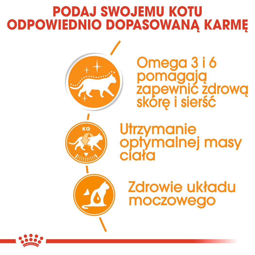 IDEALNA MASA CIAŁA - Doskonale zbilansowana karma idealnie pokrywa zapotrzebowanie na energię i składniki pokarmowe, gwarantując kotu utrzymanie prawidłowej sylwetki. |
