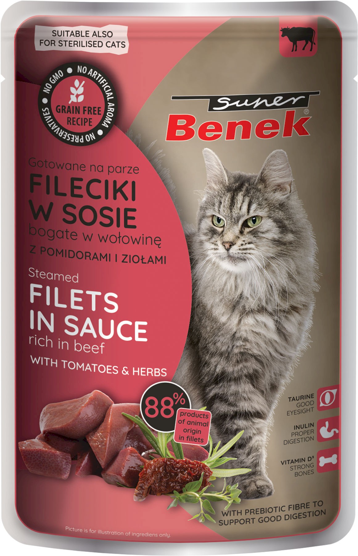 SUPER BENEK Filiecki w sosie na parze Wołowina z Pomidorami bez zbóż 85g