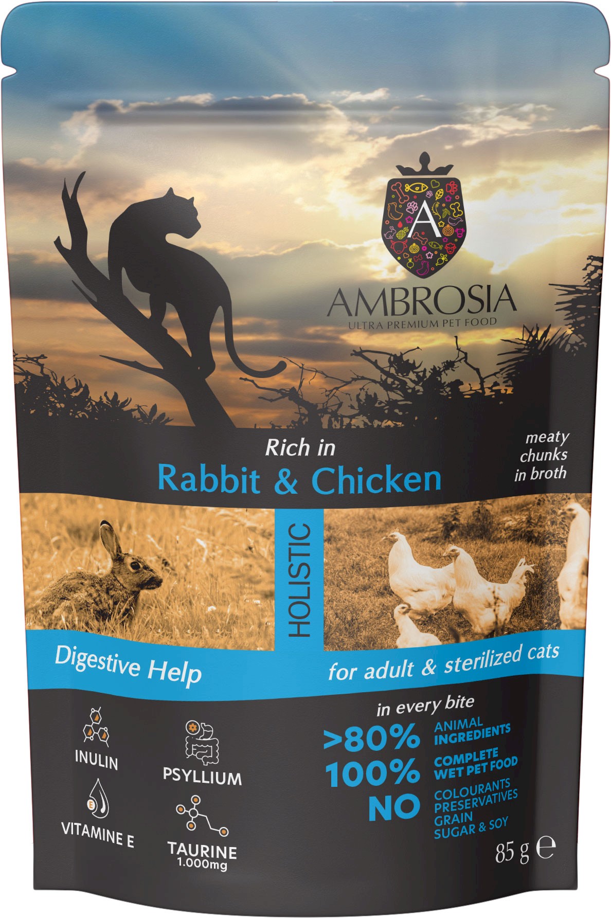 AMBROSIA Cat Adult / Sterilized Rabbit / Chicken Królik i Kurczak 85g