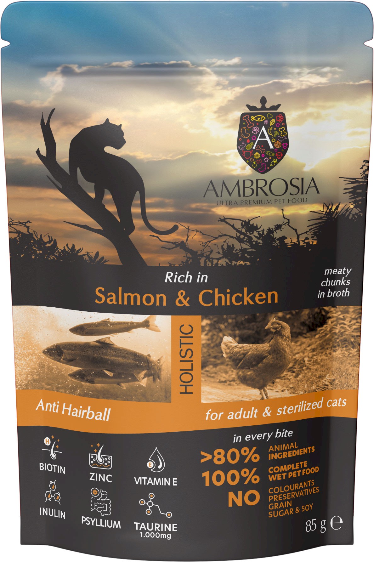 AMBROSIA Cat Adult / Sterilized Salmon / Chicken Łosoś i Kurczak 85g