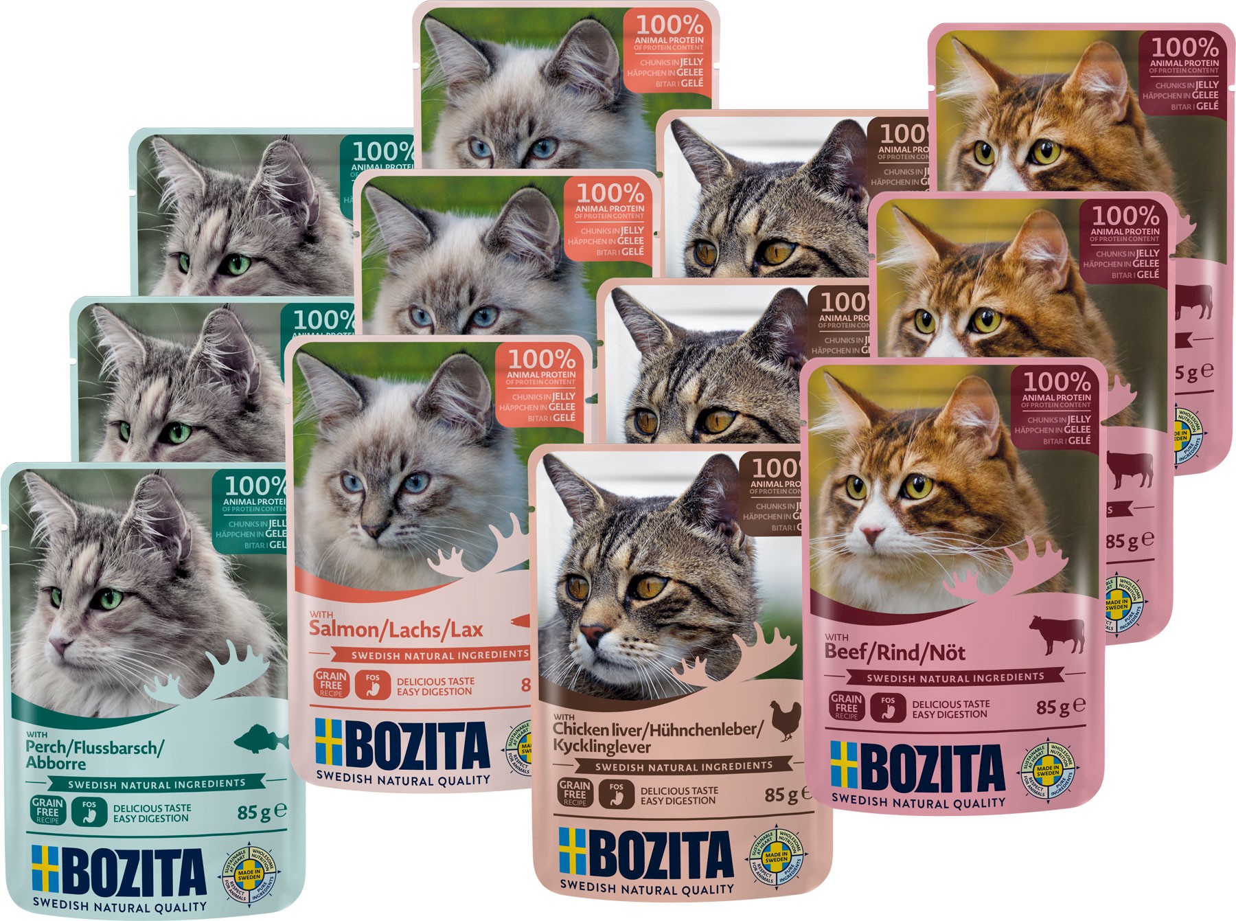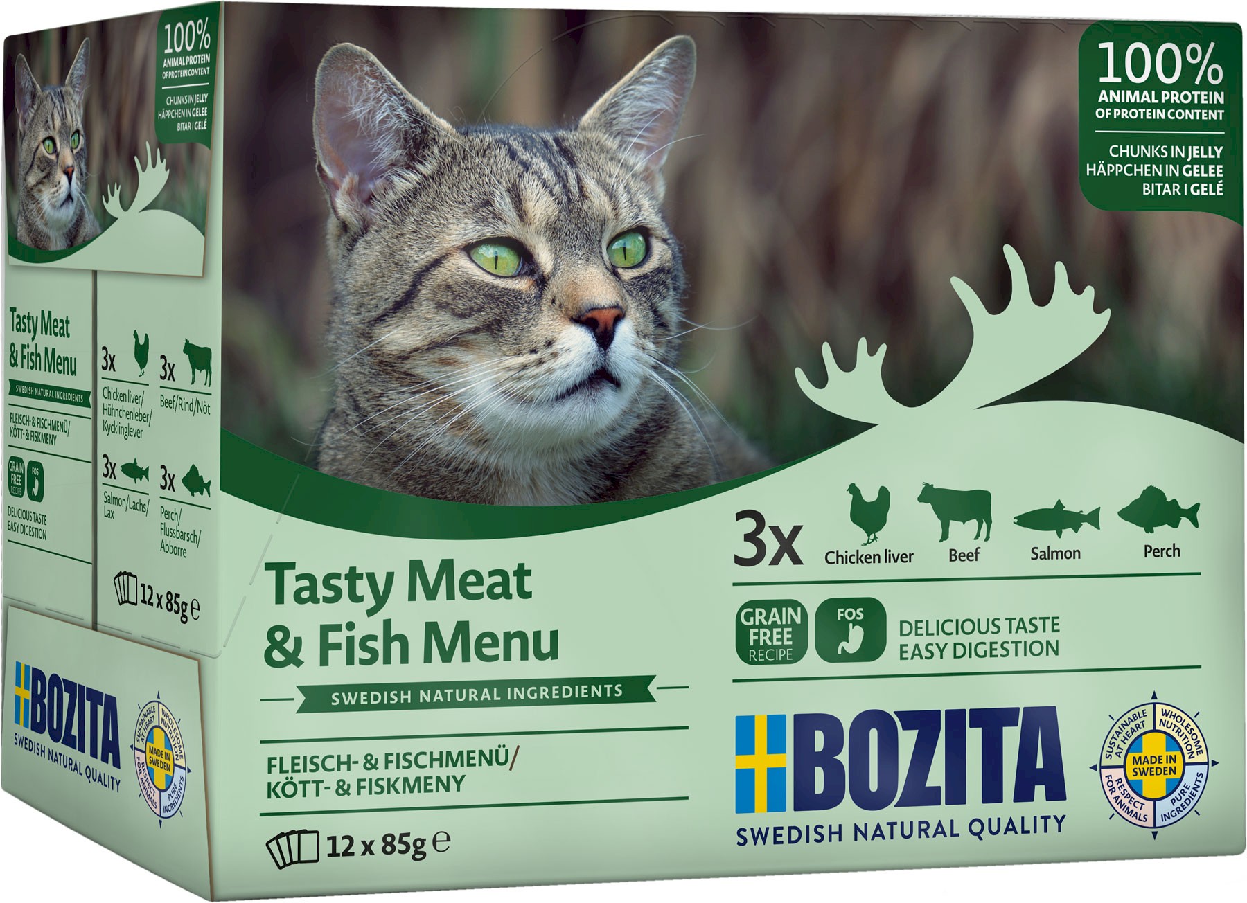 BOZITA Tasty Meat / Fish Menu mięsne i rybne w galaretce bez zbóż dla kota 12x85g