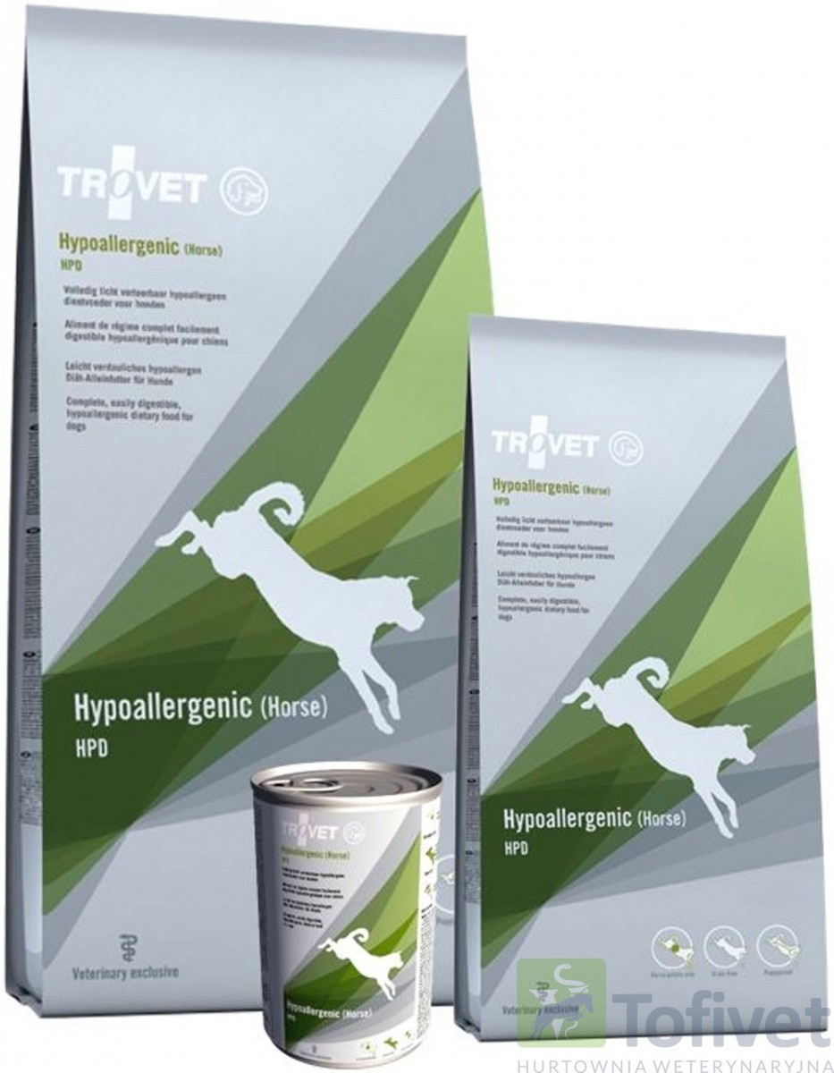 Cechy diety dla psów z alergią pokarmową z koniny Trovet HPD Hypoallergenic: |