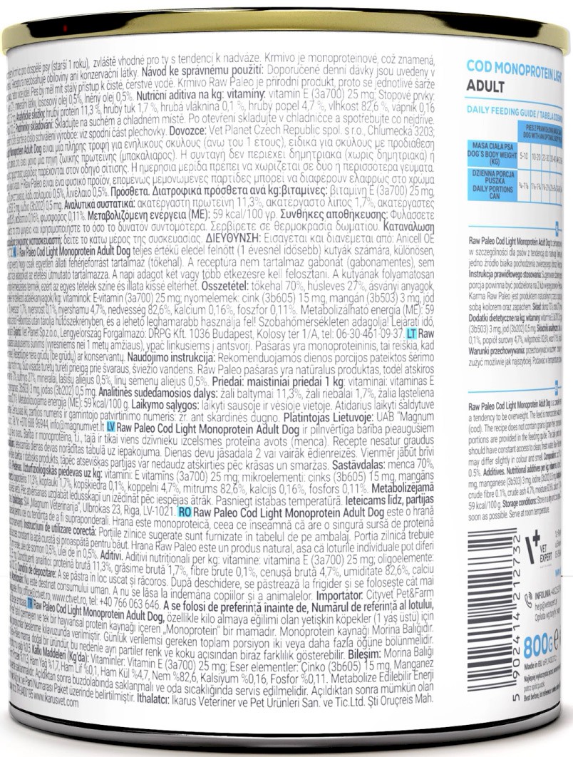Puszka RAW PALEO Adult Monoprotein Light Dorsz to: