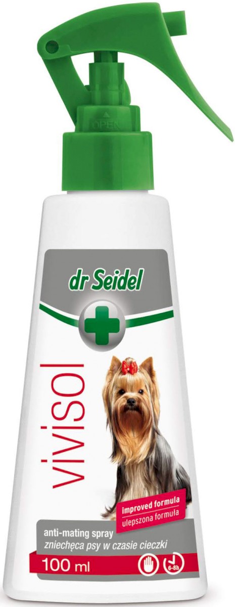 - Płyn skutecznie zmniejsza intensywność sygnałów zapachowych wydzielanych przez suki w tym czasie.