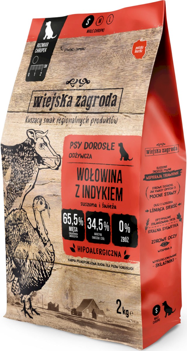 WIEJSKA ZAGRODA Wołowina z Indykiem bez zbóż S 2kg