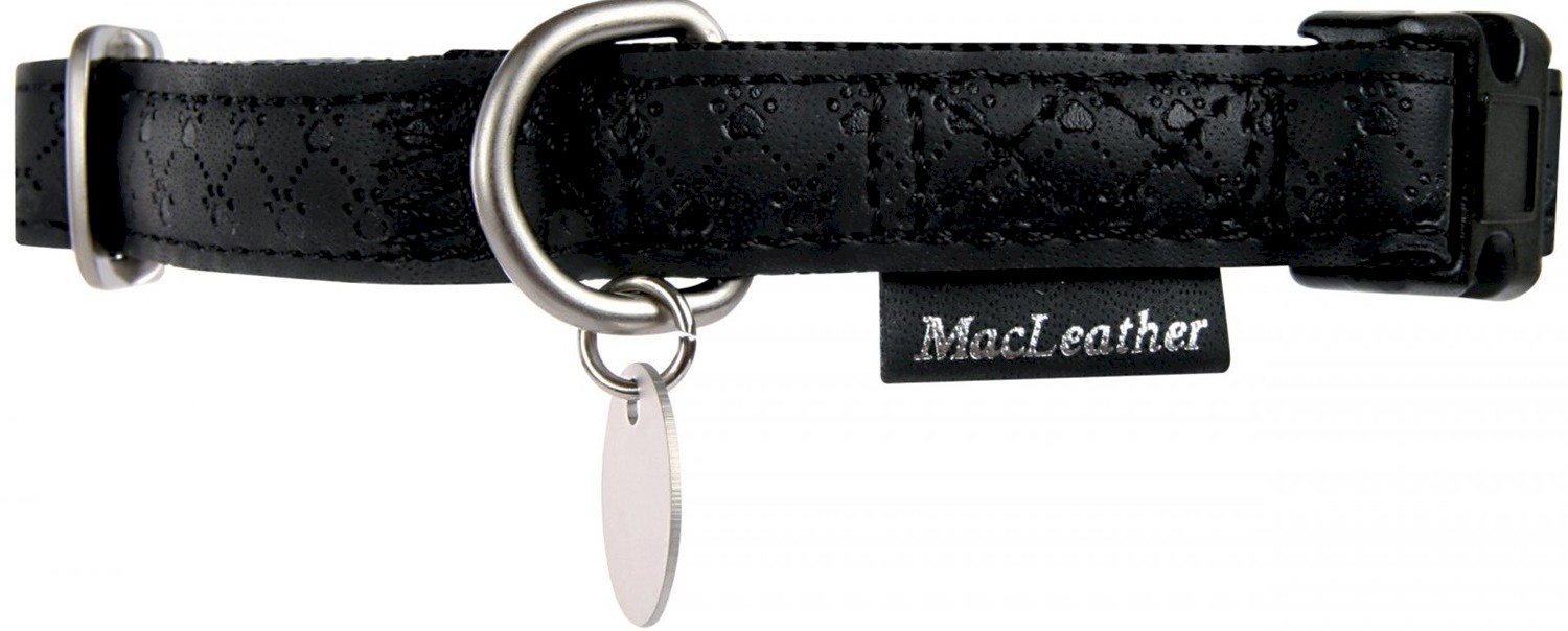 - Obroża Mac Leather wygląda niezwykle dystyngowanie dzięki ozdobnemu medalionowi i łańcuszkowi.