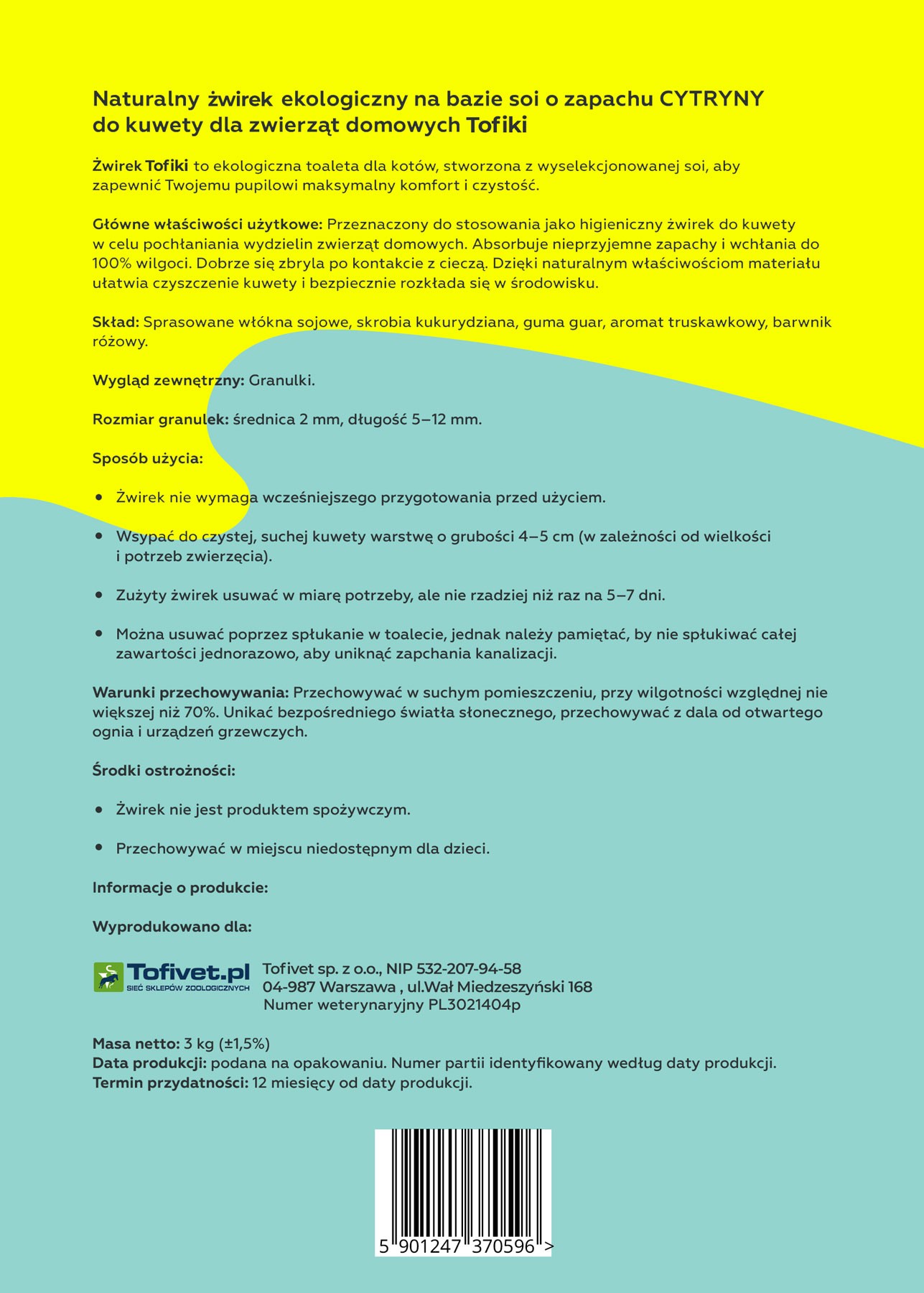 TOFIKI Żwirek sojowy zbrylający Cytryna 3kg